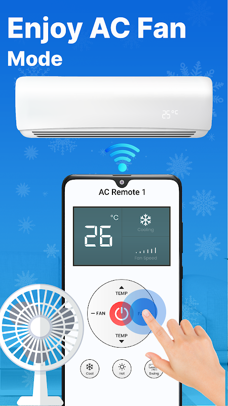 हमारे यूनिवर्सल एसी रिमोट कंट्रोल ऐप से, आप कहीं से भी, कभी भी अपने एसी का तापमान, पंखे की गति और मोड आसानी से नियंत्रित कर सकते हैं। सभी एसी के लिए यह यूनिवर्सल एसी रिमोट कंट्रोल ऐप आपको अपने स्मार्टफोन या टैबलेट से आसानी से अपने एसी सिस्टम को प्रबंधित करने की सुविधा देता है। एसी के लिए हमारा रिमोट कंट्रोल कार्यक्षमता और उपयोगकर्ता के अनुकूल डिज़ाइन का एक सहज मिश्रण प्रदान करता है।