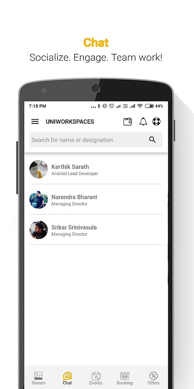 Uniwork Spaces ऐप सदस्यों को उनके व्यक्तिगत अनुभवों को साझा करने, एक दूसरे के साथ सहयोग करने, मीटिंग रूम बुक करने में आसानी से और केवल सदस्य छूट का लाभ उठाने में मदद करता है।