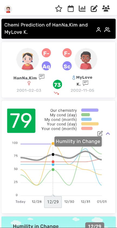 भाग्य और नक्षत्रों के चार स्तंभों पर आधारित परिष्कृत विश्लेषण के माध्यम से, यह वास्तविक समय में व्यक्तियों और अन्य लोगों की अनुकूलित व्यापक स्थिति और पांच प्रमुख स्थितियों (स्वास्थ्य, प्रदर्शन, स्नेह, वित्त, जोखिम) की कल्पना करता है और स्थिति यूपी के लिए गाइड और मिशन प्रदान करता है। . यह वास्तविक समय में दो लोगों के बीच रसायन शास्त्र की जानकारी भी प्रदान करता है। हर दिन अपनी भावनाओं और डायरी को रिकॉर्ड करें और हर पल मेमो फ़ंक्शन के माध्यम से अपनी जन्म जानकारी और भावनात्मक जानकारी का उपयोग करके अपनी व्यापक स्थिति का प्रबंधन करें।
