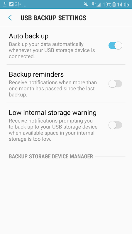 1. ऑटो बैक अप चालू करें, जैसे अगली बार जब कभी भी परिचित यूएसबी ओटीजी केबल बैक अप के माध्यम से कनेक्ट हो जाए तो उपयोगकर्ता हस्तक्षेप के बिना स्वचालित रूप से शुरू हो जाएगा।