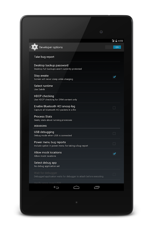 इस एप्लिकेशन को आप डेवलपर विकल्प खुला उपवास रखने की अनुमति देता है। > डेवलपर विकल्प - डेवलपर विकल्प खोलने के लिए मानक चरणों सेटिंग है। इस एप्लिकेशन का उपयोग करना, उन विकल्पों को स्वचालित रूप से जब आप USB या जब आप अपने डिवाइस डिस्कनेक्ट करने के लिए अपने डिवाइस से कनेक्ट दिखाई देगा। फिर आप चुन सकते हैं जो विकल्प आप सक्षम या अक्षम करें जो आपने पहले करना चाहते हैं।