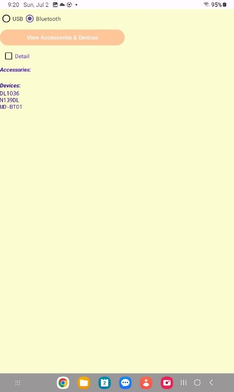 कनेक्टेड USB एक्सेसरीज़ और डिवाइस या पहले से युग्मित USB डिवाइस का पता लगाएं। विवरण मोड पूर्ण विवरण देता है.