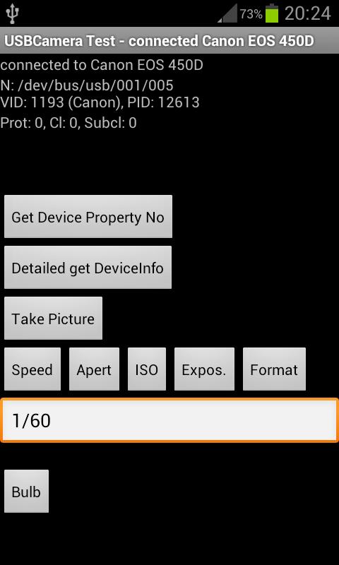 एंड्रॉयड के लिए यूएसबी PTP कोड विकसित करने के लिए एक साधारण परीक्षण अनुप्रयोग.