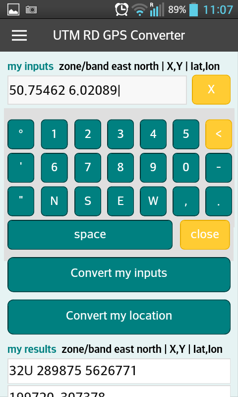 - आरडी Rijksdriehoek इनपुट और परिणाम निर्देशांक