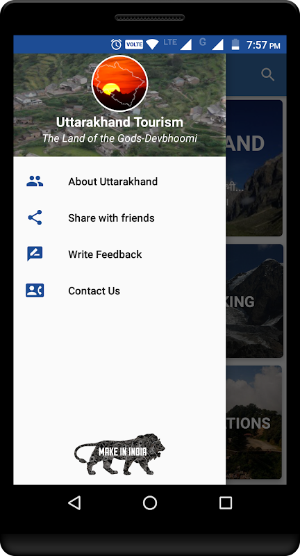 Uttarakhand Tourism App is travel guide for visitors from across the world. Here we have made our efforts to provide information, culture, food, hill stations about Uttarakhand so that visitor may know the Uttarakhand well, and does not miss any point of attraction in Uttarakhand. This app allows to guide the people through culture, hill stations, Pilgrimage, Wildlife, Trekking and many more. People can view category wise places, can view image gallery, map of that location. People can find direction from his current location to any place listed in the app.
