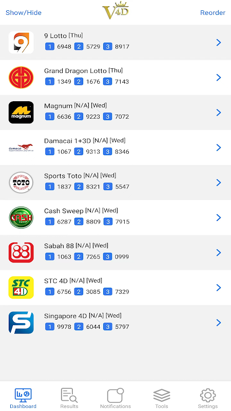 Real-time update & Fast & Attractive 4D live draw results!