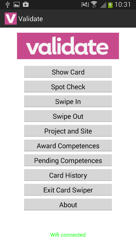 The Validate app allows anyone to check their own Validate smartcard to view their current competences.