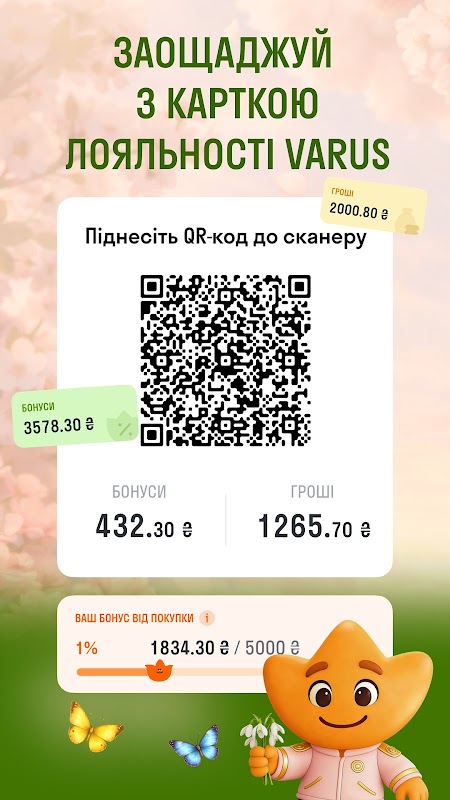 VARUS में, बोनस आपके अपने खाते में आता है, आपके पास ऐसे दो खाते हैं। बोनस या रिव्निया - अपनी इच्छानुसार भुगतान करें। हम चेक राशि का 1% कैशबैक प्रदान करते हैं, जमा करें और अधिकतम 2% कैशबैक प्राप्त करें। आपको हमारे VARUS एप्लिकेशन में दिन की छूट और सप्ताह की कीमत, अन्य प्रचार, माल और उत्पादों पर आपके विशेष और सीमित ऑफ़र, कई बियर और अन्य शराब मिलेंगी। VARUS के साथ आपको हर खरीदारी के बाद राष्ट्रीय कैशबैक मिलता है। आपका अधिकतम लाभ हमेशा आपके साथ है - बस चेकआउट पर QR कोड स्कैन करें। VARUS एप्लिकेशन के साथ, हमेशा घटनाओं के केंद्र में रहें - बिक्री के बारे में पुश सूचनाएँ प्राप्त करें और सुपरमार्केट के छूट और प्रचार के बारे में तुरंत जानें।