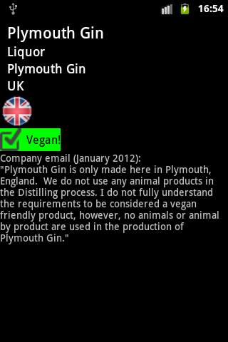 बस आप के लिए खोज कर रहे हैं उत्पाद के नाम का हिस्सा प्रकार और आप मूल के देश और उत्पाद के शाकाहारी friendlness दिखा एक आइकन झंडा आइकन के साथ उत्पादों के मिलान की एक तेजी से सूची प्राप्त करेंगे।