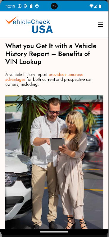 व्हीकलचेकसुसा आपको अपना वीआईएन जांचने और किसी भी कार में छिपी समस्याओं का पता लगाने में मदद करता है! व्यापक वाहन और दुर्घटना इतिहास, सेवा और मरम्मत की जानकारी, विशिष्टताएँ, चोरी की स्थिति और बहुत कुछ।