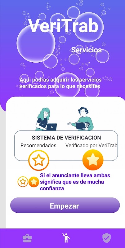 वेरीट्रैब एक मोबाइल एप्लिकेशन है जिसे नौकरी चाहने वालों को विश्वसनीय और सुरक्षित नौकरी के अवसरों से जोड़ने के लिए डिज़ाइन किया गया है। सुरक्षा और व्यावसायिक जोखिमों की रोकथाम पर ध्यान देने के साथ, वेरीट्रैब एक ऐसा मंच प्रदान करता है जहां सभी नौकरी प्रस्तावों को पहले से सत्यापित किया जाता है