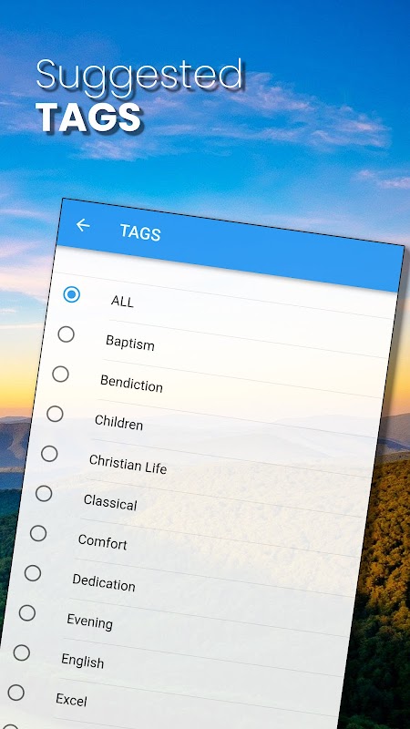 संस्करण 11 में मलयालम गीतों के लिए टैग हैं जो शादी, होली कम्युनियन और अधिक जैसे अवसरों के अनुकूल गीतों को जल्दी से ढूंढते हैं।