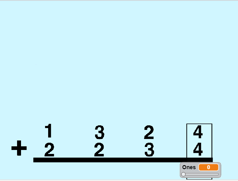 This is a game about Vertical Addition. We have two buttons at the start of the game. If we press the one button we create our two 4-digit addends by moving a slider or if we press the other button we make addition with two numbers chosen by using random choice. The student must find every digit of the sum. He chooses the number by using a slider. The game asks in sequence the digits for ones, tens, hundreds and thousands. After every answer the student will see in the top of the screen a visualisation of a standard algorithm of addition with base ten blocks for ones, tens, hundreds and thousands. This is a helpful teaching resource for Teachers, Parents and Students