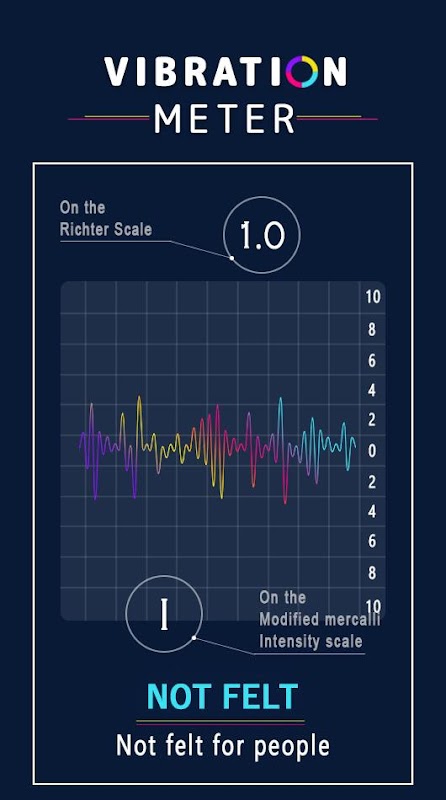 This Vibration Meter App uses acceleration sensor to measure vibration or an earthquake, and it shows a reference as a seismic detector. Vibration Meter Alarm App is an App called seismograph or seismometer, which measures the strength of vibration, quakes, earthquakes, vibrations of the human body or any other objects around you. Digital Vibration Meter is a seismic scale used for measuring the intensity of an earthquake. vibration meter free measures the effects of an earthquake and vibration meter App is distinct from the moment of magnitude.