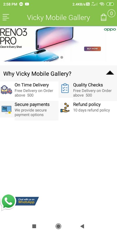 यह विक्की मोबाइल गैलरी का मोबाइल ऐप है, ग्राहक इस ऐप से ऑर्डर दे सकता है