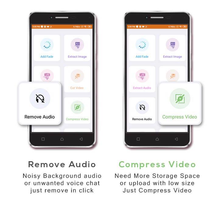 - Remove audio : Noisy Background audio or unwanted voice chat just remove in click.