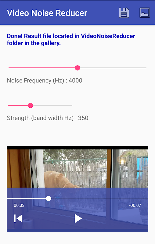 4. प्रेस "लागू करें"। परिणाम गैलरी में "VideoNoiseReducer" फ़ोल्डर में सहेजा गया है।