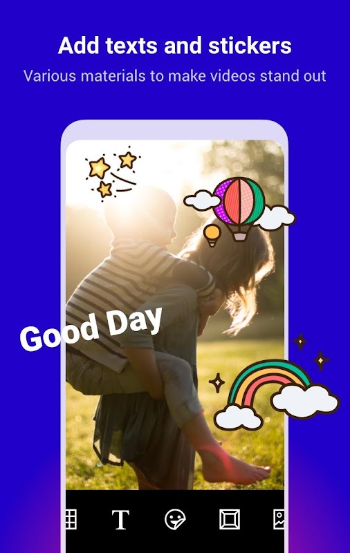 • बार्डर: विभिन्न बार्डर थीम्स आकार में समायोज्य हैं, जिससे कि वे आपके संपादित वीडियो पर पूरी तरह फिट हो सकें!