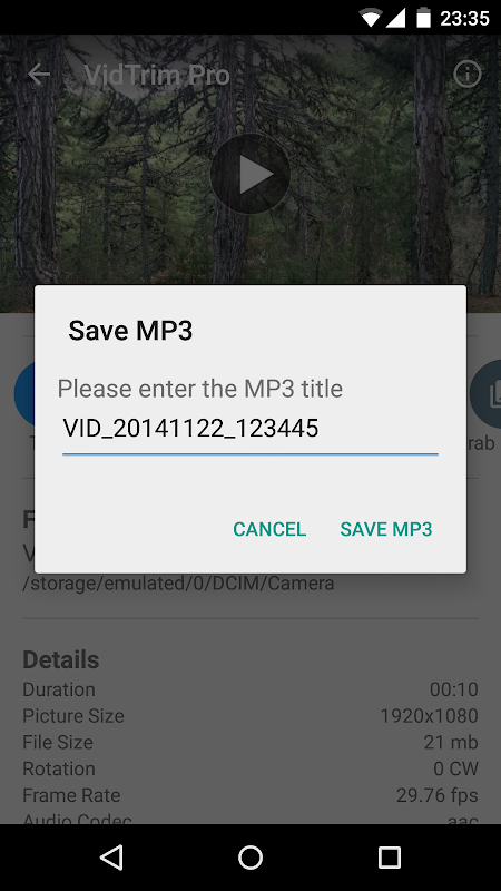 VidTrim प्रो Android के लिए एक वीडियो संपादक और आयोजक है। इसमें ट्रिमिंग, मर्जिंग, फ्रेम हथियाने, वीडियो प्रभाव, एक्सट्रेक्ट ऑडियो (एमपी 3 में कन्वर्ट) और ट्रांसकोडिंग (MP4 में कन्वर्ट) जैसी कई विशेषताएं शामिल हैं। आप सीधे ऐप के माध्यम से अपने दोस्तों के साथ अपने वीडियो भी साझा कर सकते हैं।
