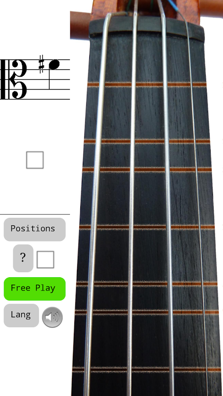 - Choice of notes to play : Choice of positions among 13 possible ones (from open string to 7th position), flat On/Off, sharp On/Off