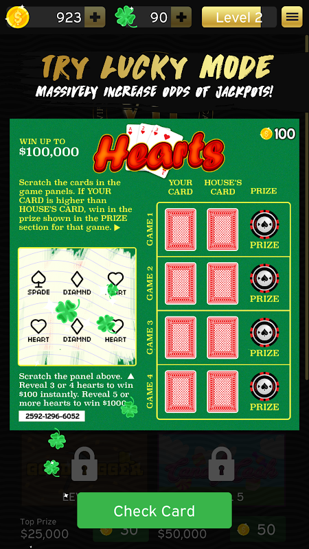 स्तर ऊपर और उत्तरोत्तर नया स्क्रैच कार्ड अनलॉक आप खेलते हैं के रूप में। बोनस पैनलों बंद स्क्रैच बोनस पैसे जीतने के लिए।