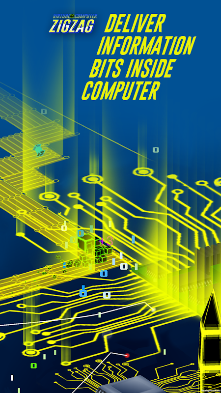 Explore the virtual world of computers, chips and electronics – don’t fall from the power road, conquer the zigzags and compete against artificial intelligence and neural network which make zigzag road. Bright and colourful world of signals, information, bytes and bits is waiting for you.