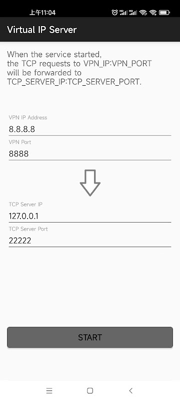 इस ऐप का उपयोग करके, आप अपने मोबाइल फोन पर एक मनमाना 'वर्चुअल' आईपी एड्रेस सेट कर सकते हैं। 'वर्चुअल' आईपी पते के अनुरोधों को निर्दिष्ट सर्वर पर पुनर्निर्देशित किया जाएगा।