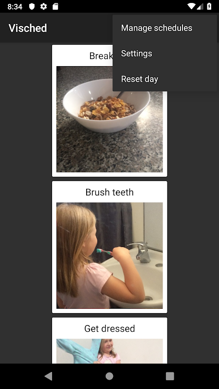 अपनी पसंद के किसी भी चित्र के साथ अपने दैनिक शेड्यूल में उतने कार्य जोड़ें, अपने कैमरे से लिए गए या अपनी गैलरी में सहेजे गए। यह आपको विज़ुअल शेड्यूल में आमतौर पर उपयोग की जाने वाली अमूर्त छवियों के बजाय स्थानों और वस्तुओं की वास्तविक तस्वीरों का उपयोग करने की अनुमति देता है।