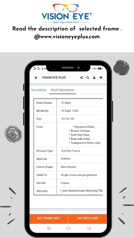 EYEGLASSESES : Serving an enormous variety of frames , trying to precedence our own brand VI-SIGHT,SYNITY adding handful of features on our website,offering color pallet, comprehensive details about the product.