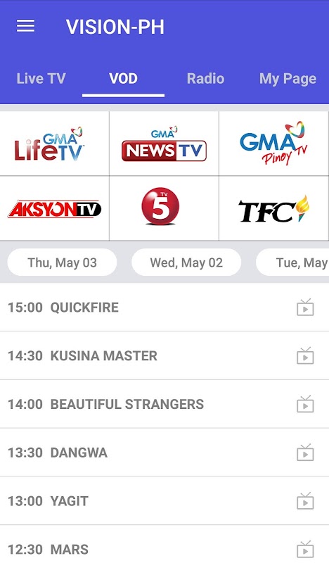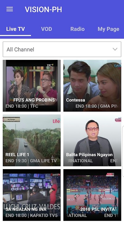 विजन-पीएच - लाइव टीवी और फिलीपीन के मुख्य प्रसारणकर्ता की VOD सेवा।