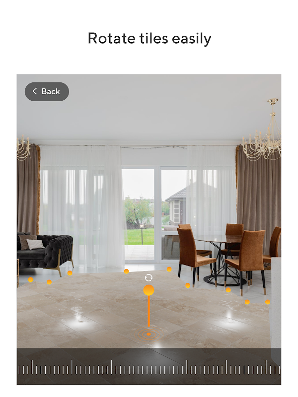 In good lighting conditions, define the floor or area to be tiled with a tap of your finger. Then scan the tile QR code to import the desired tile. Adjust the tile orientation and lay the select-ed tiles in the defined area.
