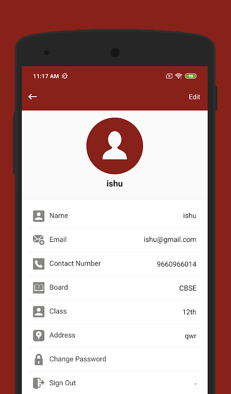 टेस्ट- टेस्ट सेक्शन pdf को स्टोर करता है जो प्रत्येक विषय से संबंधित प्रश्न बैंक है। छात्र को इसे डाउनलोड करने और एक-एक करके जवाब देने के लिए एक विषय होना चाहिए। छात्र केवल इस अनुभाग में प्रस्तुत और देख सकते हैं।