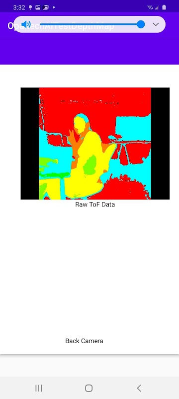 एंड्रॉइड फोन पर टाइम ऑफ फ्लाइट सेंसर का उपयोग करके गहराई के नक्शे को विज़ुअलाइज़ करना।