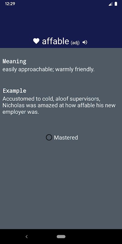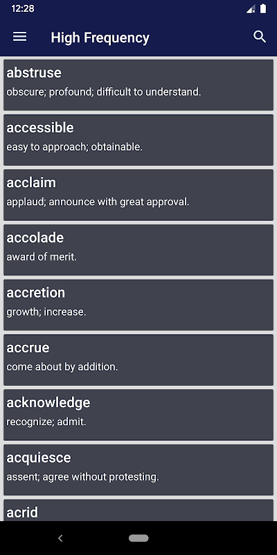 इस एप्लिकेशन के साथ अपने सैट शब्दावली में सुधार करें। इसमें परिभाषा और उदाहरण, परीक्षण, फ्लैशकार्ड, उच्च आवृत्ति शब्द सूची, पसंदीदा शब्द सूची के साथ 4000+ सैट शब्द हैं।