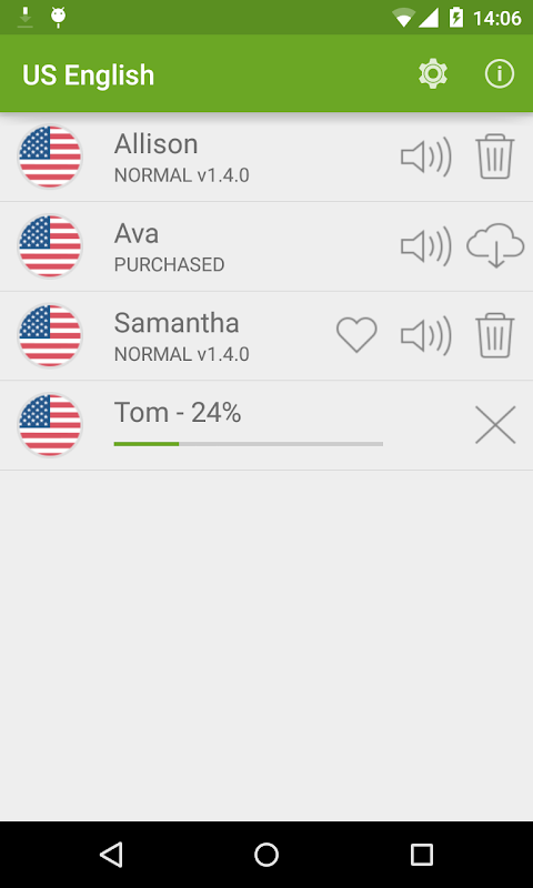 - Each voice can be purchased through a simple In-App purchase process. App includes a 7 days trial to test voices.
