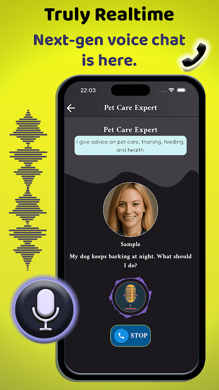 - फ़ोन कॉल जैसा लगता है - टाइप करने की ज़रूरत नहीं है। बस खुलकर बोलें, गहराई से सुनें, और सहज, लाइव बातचीत का आनंद लें जो एक वास्तविक फ़ोन वार्तालाप की नकल करती है।