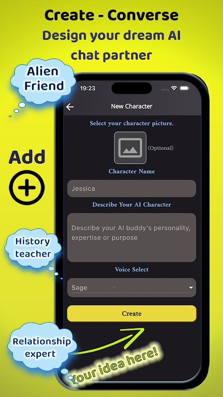 या अपना खुद का वैयक्तिकृत AI बनाएँ! इसे नाम दें, इसके व्यक्तित्व को परिभाषित करें, और चुनें कि यह आपके लक्ष्यों का सबसे अच्छा समर्थन कैसे कर सकता है - चाहे वह मानसिक स्वास्थ्य, कानूनी मार्गदर्शन, डेटिंग सलाह, या बस मौज-मस्ती और संगति के लिए हो।