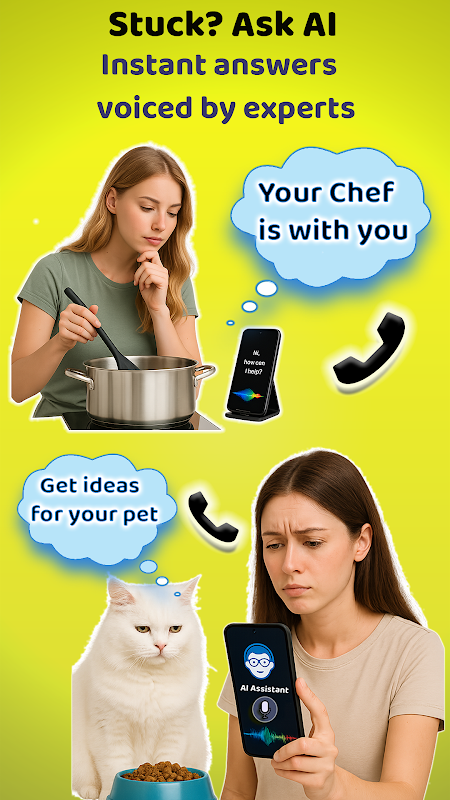 चाहे आपको प्रेरित करने के लिए लाइफ़ कोच की ज़रूरत हो, रेसिपी बनाने के लिए AI शेफ़ की या अपने वित्तीय लक्ष्यों को अनुकूलित करने के लिए बजट प्लानर की, हमारा ऐप तुरंत गतिशील, आवाज़ से संचालित सहायता प्रदान करता है।