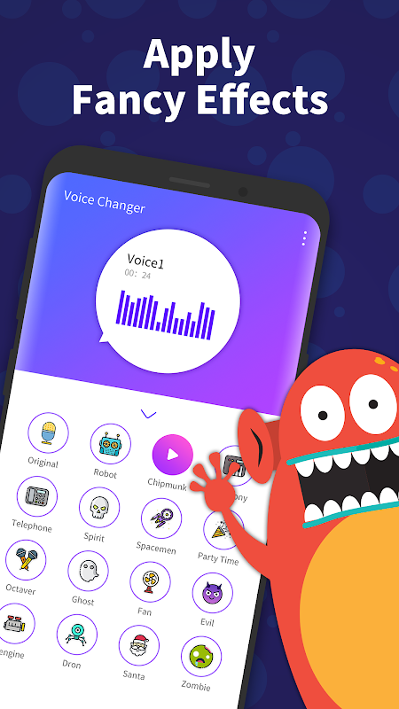 This best voice changer offers multi-effect in one app. You can recording your own voice, save the original voice and also can change into different voice effects.