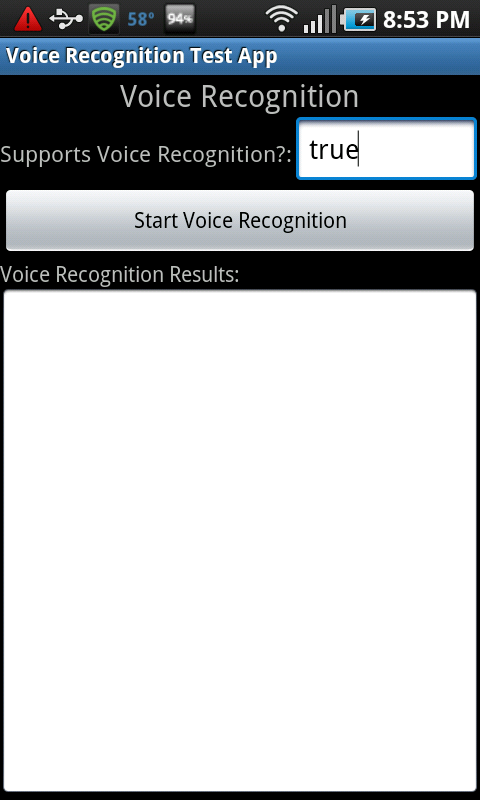 एंड्रॉइड वॉयस रिकग्निशन क्षमताओं के बुनियादी परीक्षण की अनुमति देता है