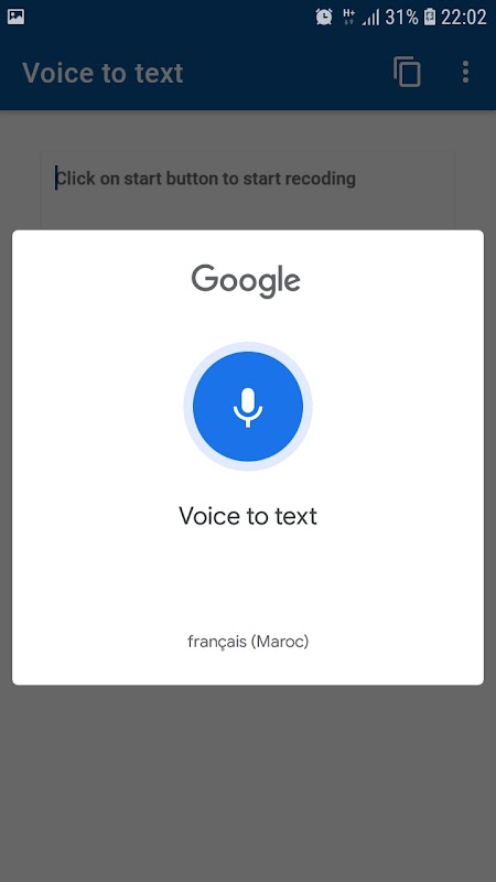 महत्वपूर्ण: वॉइस टू टेक्स्ट ऐप का उपयोग करने के लिए आपको इंटरनेट से कनेक्ट होना होगा।
