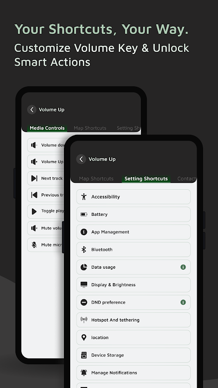 🔹 अपने वॉल्यूम बटन को अधिक उपयोगी बनाएं! केवल ध्वनि समायोजित करने के बजाय, आप समय बचाने और सुविधा में सुधार करने के लिए ऐप्स खोलने, मीडिया प्रबंधित करने और त्वरित कार्य करने जैसी कस्टम क्रियाएं सेट कर सकते हैं।