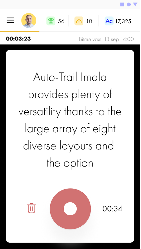 - Your voice record will be validated by the algorithm and if you read the sentence or word fully with the right pronunciation you will get points equal to the number of symbols in the sentence. If one word in the sentence was not read or was read with wrong pronunciation you do not get any points.