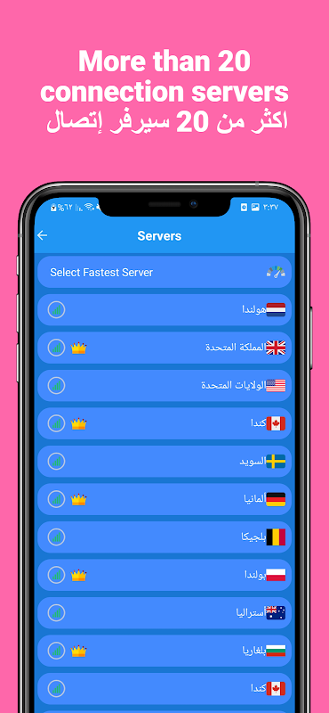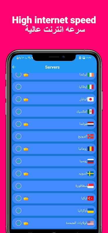 आप मुफ्त में उच्च इंटरनेट गति प्राप्त करने और तेज और सुरक्षित डाउनलोडिंग और ब्राउज़िंग का आनंद लेने के अलावा, एक बटन के क्लिक के साथ अपना भौगोलिक स्थान बदल सकते हैं।