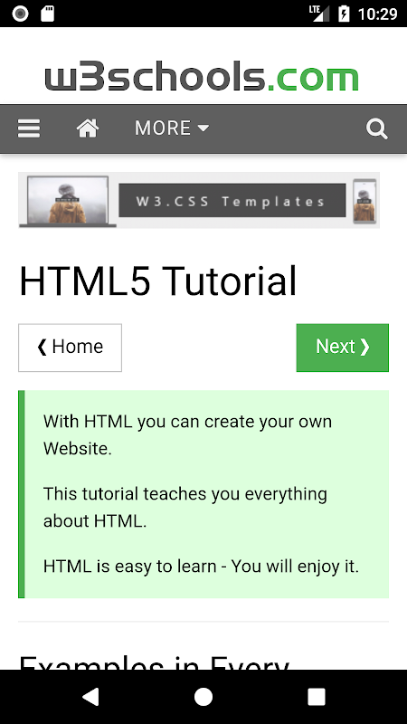 ->This w3schools online tutorials app comes with a complete comprehensive and responsive layout