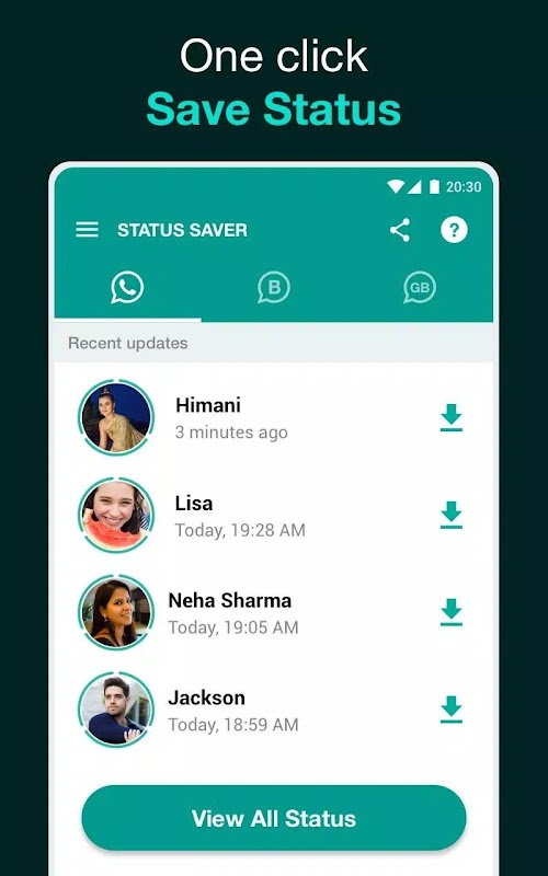 WA.Status Saver - डाउनलोडर का उपयोग करके आप केवल एक चरण में स्थिति को डाउनलोड और सहेज सकते हैं।