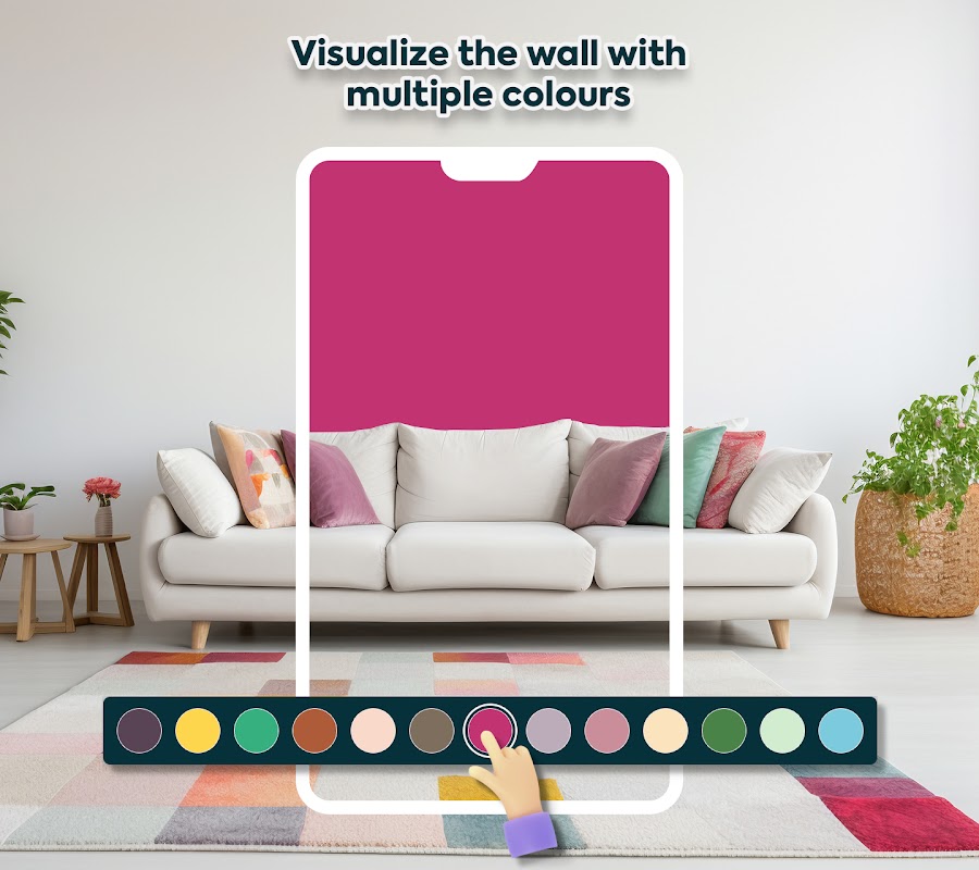 - अपनी दीवारों पर वस्तुतः विभिन्न रंगों को आज़माने के लिए ऐप का उपयोग करें। रंग लगाने के लिए दीवार पर टैप करें और कल्पना करें कि यह वास्तविक स्थान पर कैसा दिखेगा।