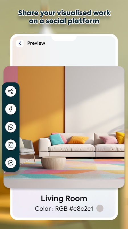- मित्रों या परिवार से प्रतिक्रिया प्राप्त करने के लिए अपने रंग विकल्पों और विज़ुअलाइज़ेशन को सोशल मीडिया प्लेटफ़ॉर्म पर साझा करें।
