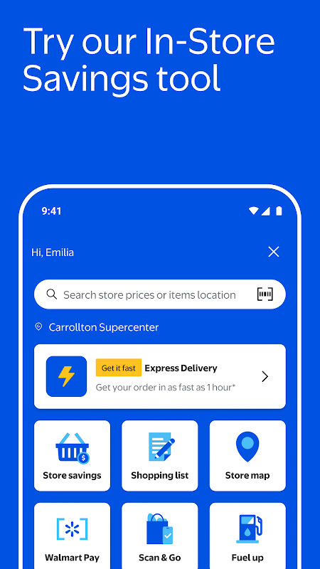 स्टोर मैप्स की मदद से अपनी सभी पसंदीदा चीज़ें तुरंत ढूँढ़ें और वॉलमार्ट स्टोर पर किराने का सामान और ज़रूरी चीज़ें ख़रीदने में समय बचाएँ।