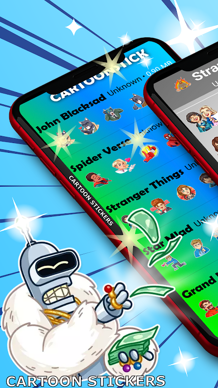 WAStickerApps New Stickers Funny Cartoons contains more than 20 sticker packs to incorporate into your text messages.